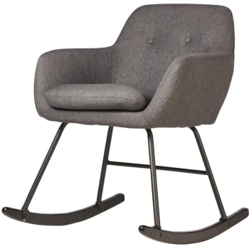 ATHM DESIGN Fauteuils Rocking Chair Assise Tissu Gris Clair Pieds Métal Noir