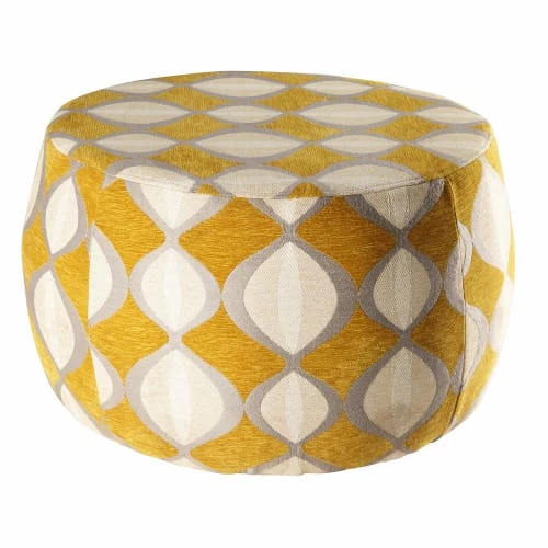 Dynamisez votre intĂ©rieur aux inspirations seventies Ă l’aide du pouf jacquard de velours moutarde SPACE !