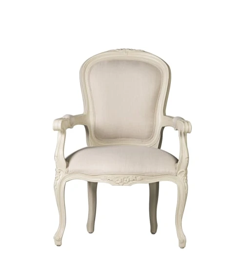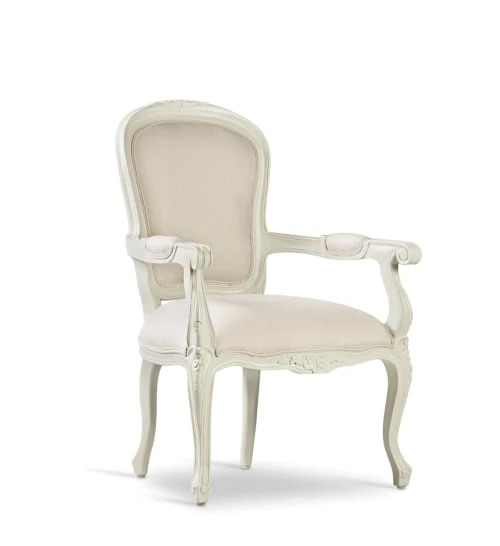Fauteuil de la collection VINTAGE LOUIS, fabriquée à la main avec la structure en bois massif d’acajou. La finition est blanche et le revêtement est en polyester haut de gamme, coloris blanc. La hauteur du siège est de 46cm. De style classique, ce fauteuil apportera élégance. Aucun assemblage nécessaire.