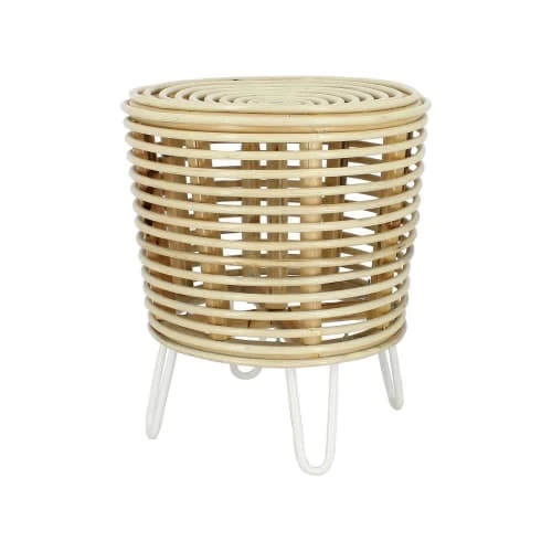 Pirouette Paris Poufs Bout De Canapé En Rotin Et Pieds En Métal Blanc