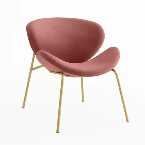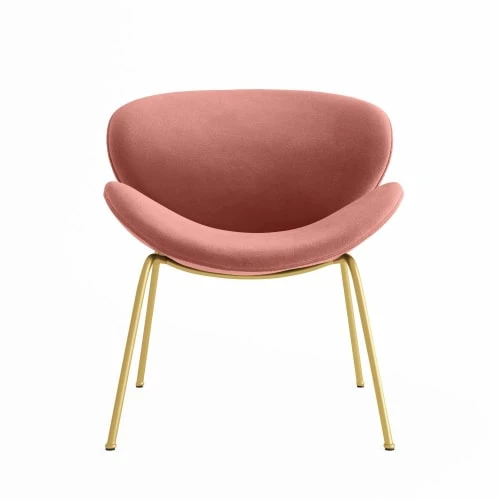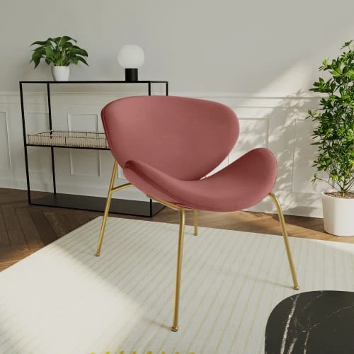 Magnifique silhouette pour ce fauteuil en velours rose vintage et pieds en métal or ! Avec son assise et son dossier singulièrement larges, il cumule esthétique originale et confort maximal. Aérien, enrichi par le contraste entre piètement fuselé et courbes enveloppantes, ce fauteuil de salle à manger semble en mouvement. Ses lignes contemporaines s’intègrent aisément dans les décos intérieures à l’état d’esprit actuel. Il se mixe avec ses autres coloris pour accentuer les volumes. Pour encourager le côté cocooning, misez sur les accessoires chaleureux, les formes et les tons doux, une note dorée qui rappelle ses pieds, les matières moelleuses, par exemple des coussins Léonard écrus et un tapis épais.